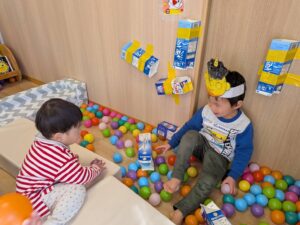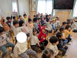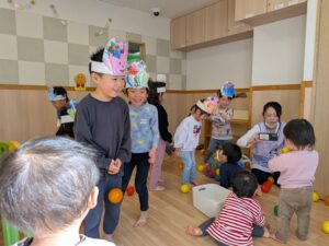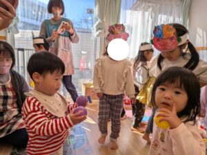 集会後部屋で豆まきをしていると、鬼が登場👹