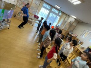 1月の英語レッスンのまとめとして、かぜ・そらぐみでJohnny先生によるレッスンを行いました✨ 様子……