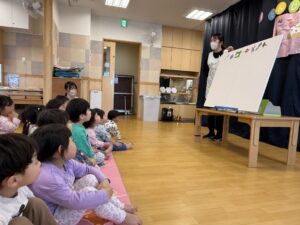 次は保育者からのプレゼントで、パネルシアターのお話がありました。