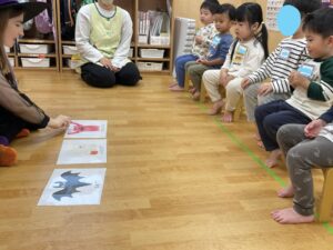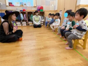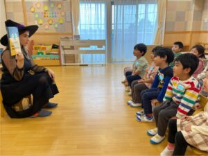 ハロウィンの仲間たちの単語チェックや、絵本を読んでもらいました📚