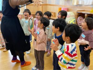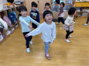 いつもレッスンで行っている”Can you make a happy face?”の曲が流れるとノリノリに♪