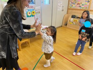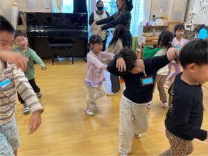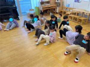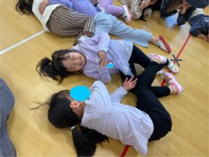 最後はリトミック風のゲーム!きらきら星のオルゴール音楽に合わせてすやすや・・・