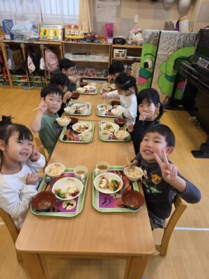 給食はJohnny先生お手製のハロウィンオリジナルランチョンマットを敷いて食べました!