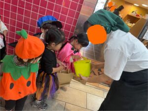「Trick or Treat!」お菓子をもらって「Thank you!」も上手に言うことが出来ていました😊
