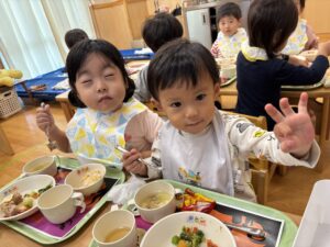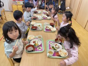 給食はJohnny先生お手製のハロウィンオリジナルランチョンマットを敷いて食べました!