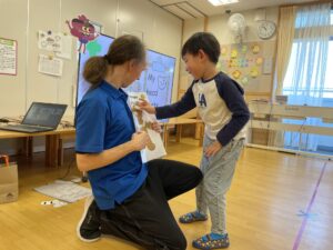 積極的に手を挙げ「eyes!」「ears!」などと選んだパーツを声に出しながら貼り付けていました😊