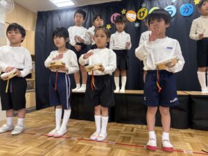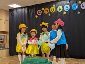 たくさんのお客様にドキドキの子どもたちでしたが、大きな声で歌を歌ったりセリフを言うことができました!