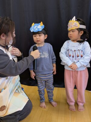 最初は『節分の由来』の紙芝居を読みながら、クイズ形式で節分について学んだりしました!クイズも楽しんで参加してくれました😄👏🏻