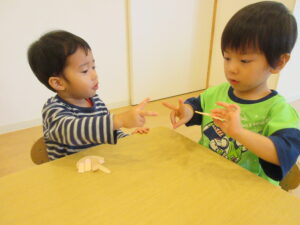 グーチョキパーを作るときは、自分の手で作りお友だちや保育者と「こうかな?」と考える姿が可愛らしかったです💗