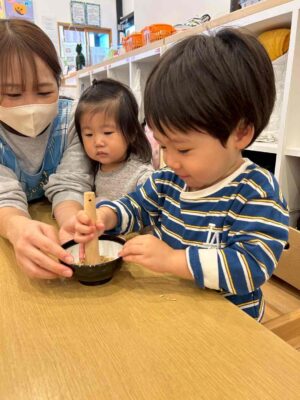一粒ずつもみを剥いたり、すり鉢でまぜてみたり色んな方法でチャレンジしてみました。