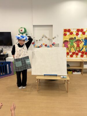 風船の帽子を被って登場した保育者に一点集中の子どもたち👀ワクワクしながら待っていると…