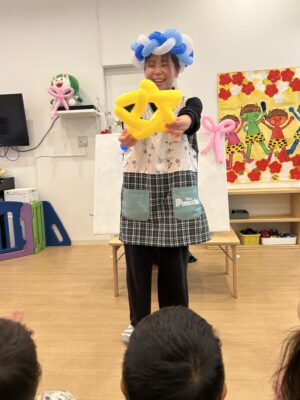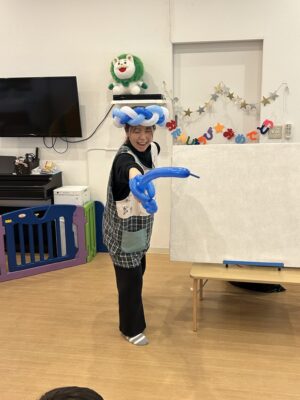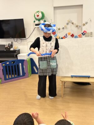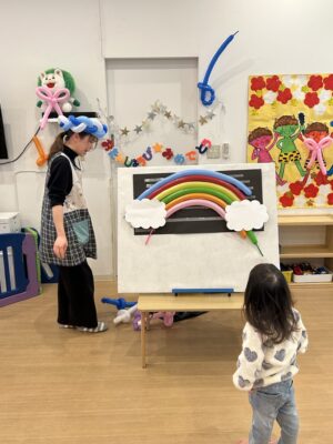プレゼントを受け取った後はいよいよ保育者からの出し物🎈バルーンアート🎈の始まり。