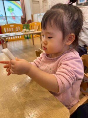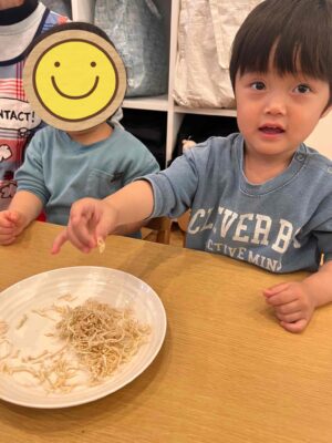 切干大根の匂いを「ちょっとくさい~」と話す子もいましたが、「干すと栄養たっぷりに変身するんだよ!」と説明したら食べてみる!と言ってくれる子もいました😊