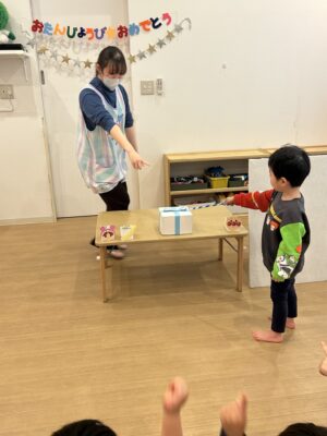 今日はお誕生日会。きらら保育園にプレゼントが届きました🎁