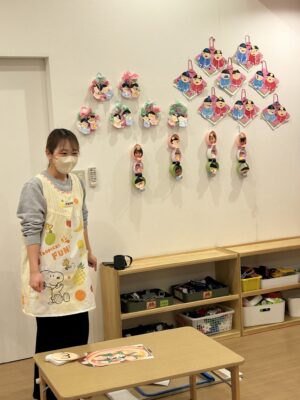 子どもたちの作ったおひなさまを見ながらひなまつりの話を聞きました😊