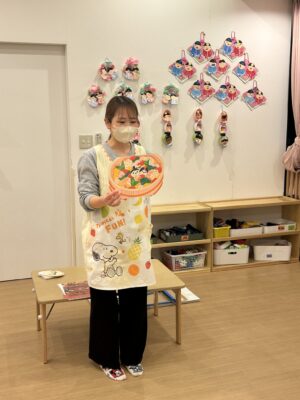 『うれしいひなまつり』の歌に合わせて五段飾りが完成し、最後はひなまつりクイズです!