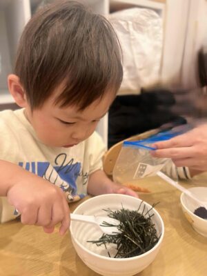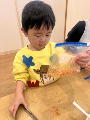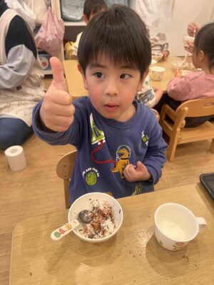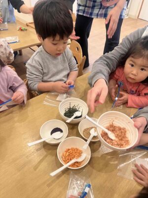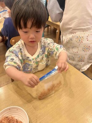 子どもたちが自分で「選ぶ・まぜる・食べる」という一連の体験を通して「自分が作ったものは特別!!」という気持ちを持ってくれたらいいなと思いました。