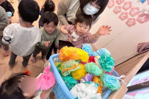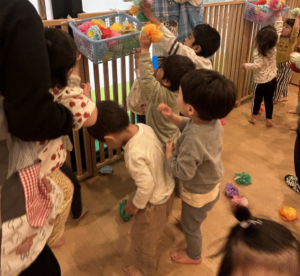 そしてチームに分かれてお花をかごに入れるゲームを行いました😄
