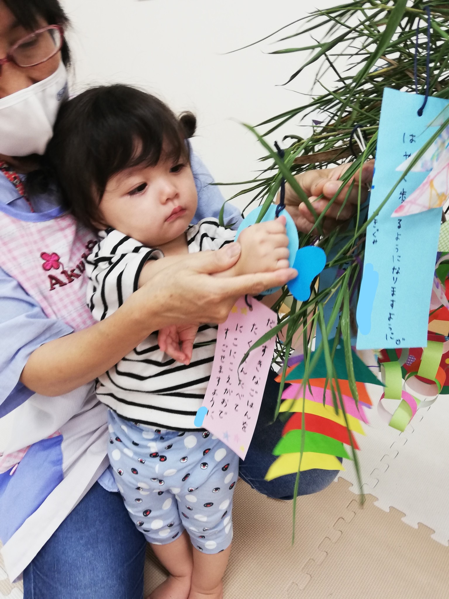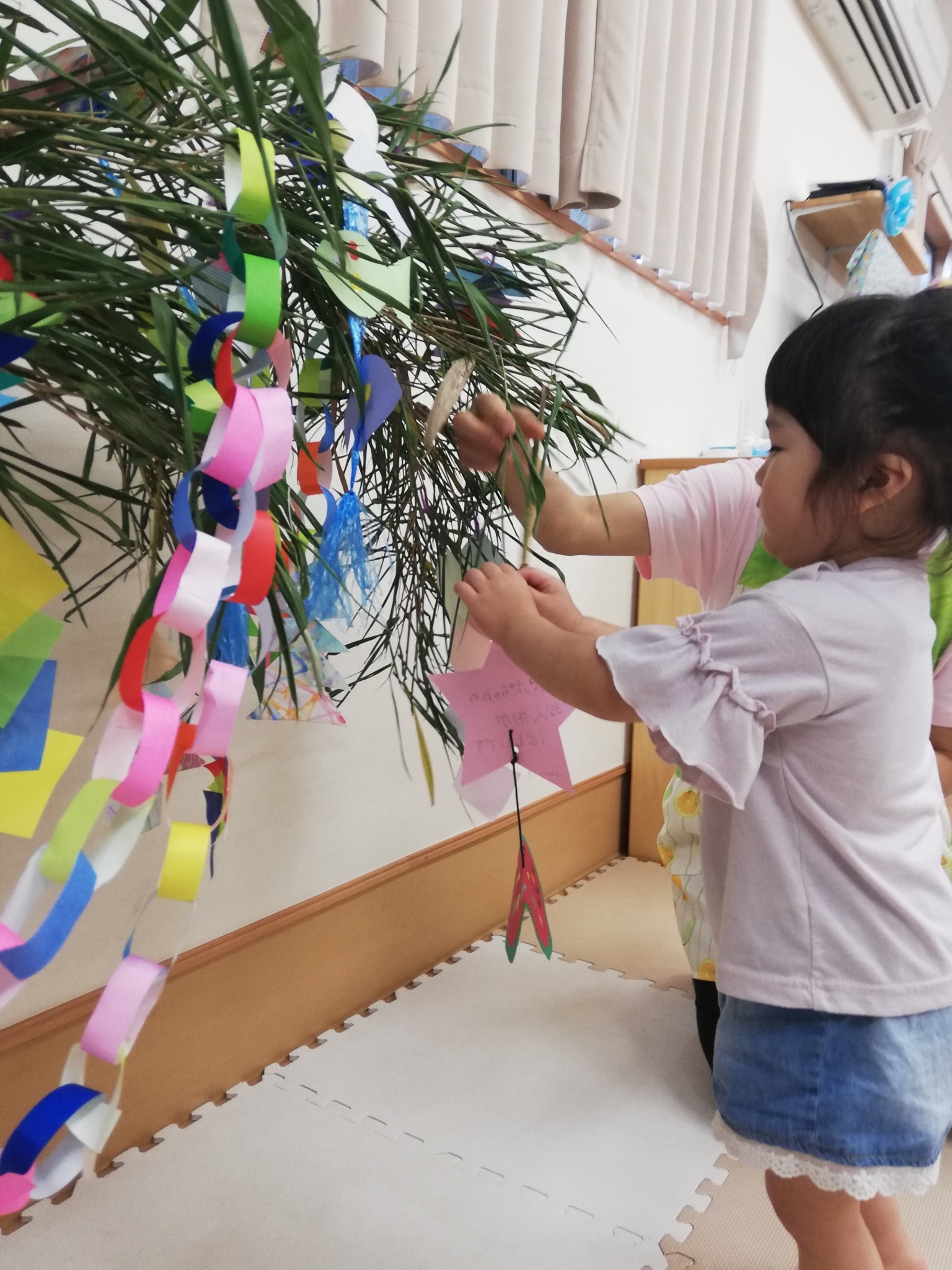 短冊を飾った後、七夕の歌ときらきら星を元気に歌いました。