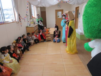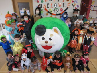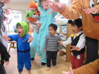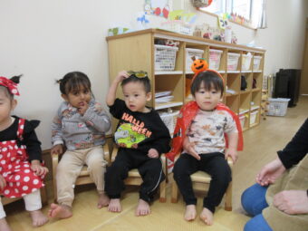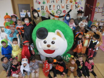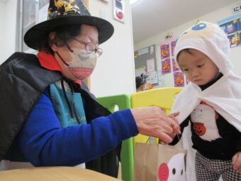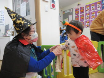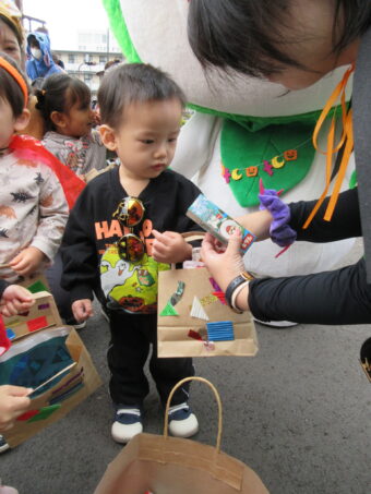 みんなで保育園に戻り、もう一度「トリックオアトリート!」