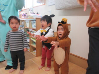 朝の体操で練習し、元気いっぱい「いたずらしちゃうぞ!ワ―!!」とポーズも決まっていました!!