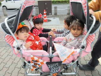 プリンセスやミッキー&ミニー、パンプキンなどかわいい仮装をして嬉しそうに登園していました。