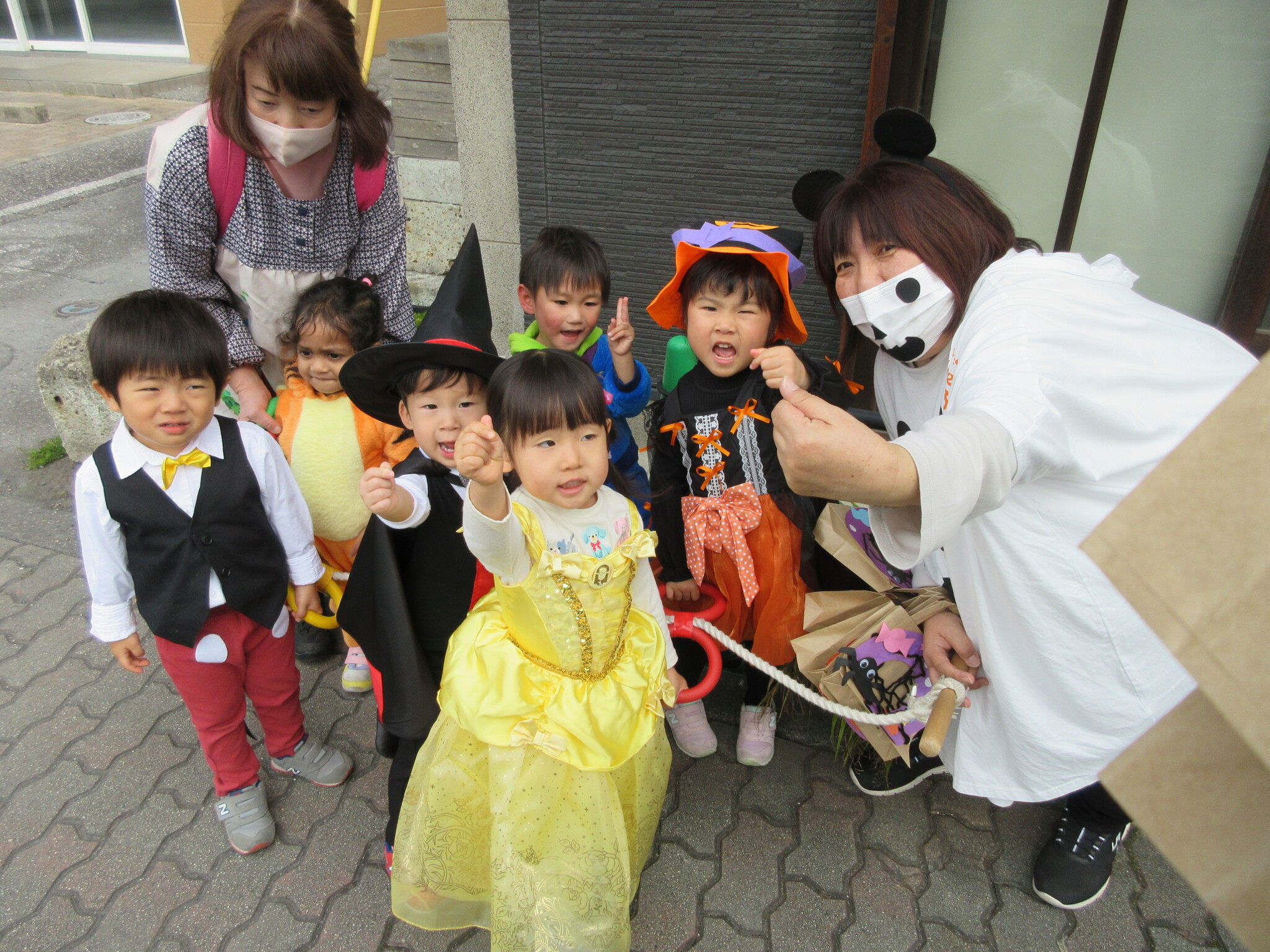 みんなで保育園に戻り、もう一度「トリックオアトリート!」
