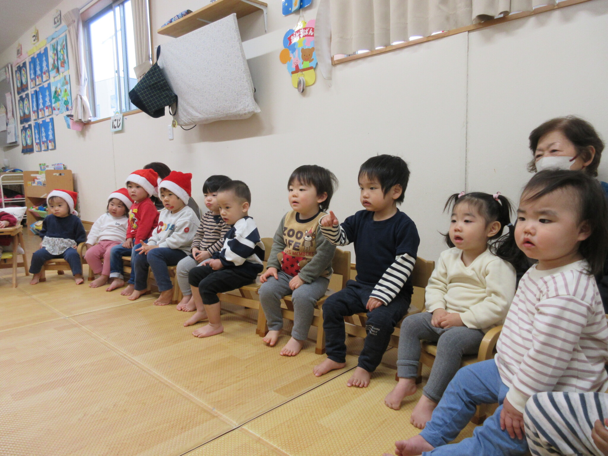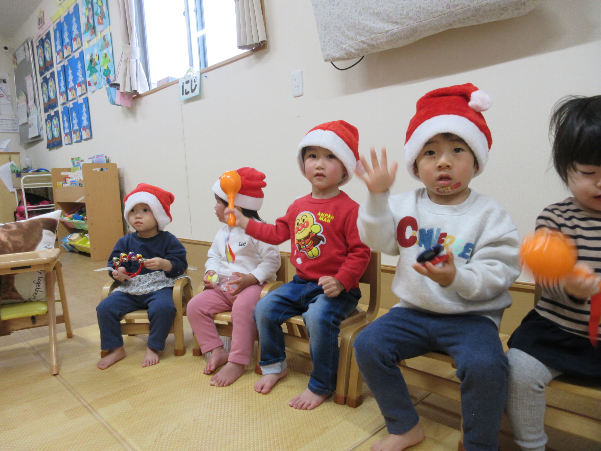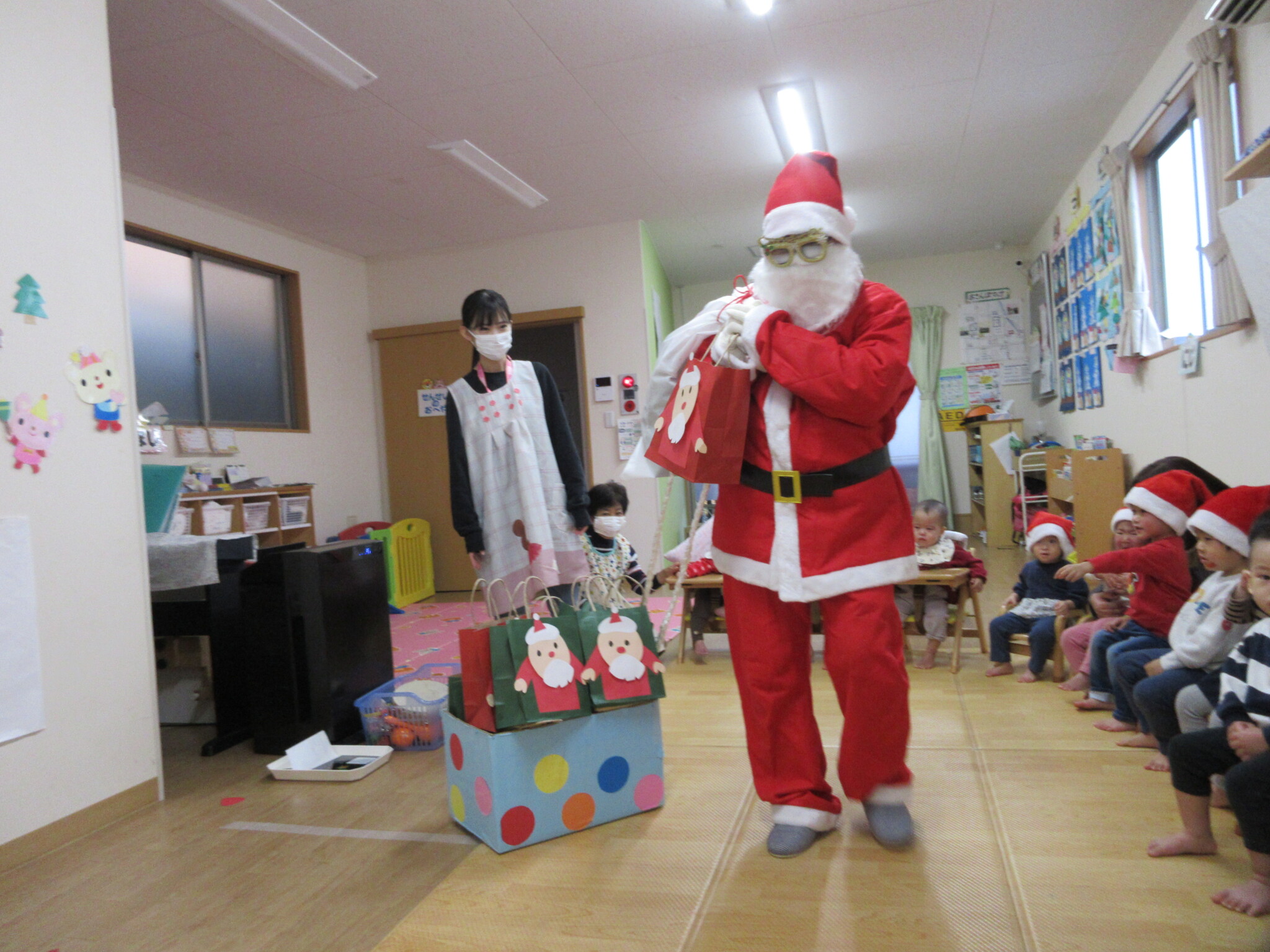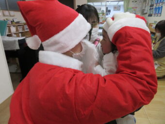 「サンタさん来るかな~?」「〇〇がほしい!」などとこの日を楽しみに待っていた子どもたち。