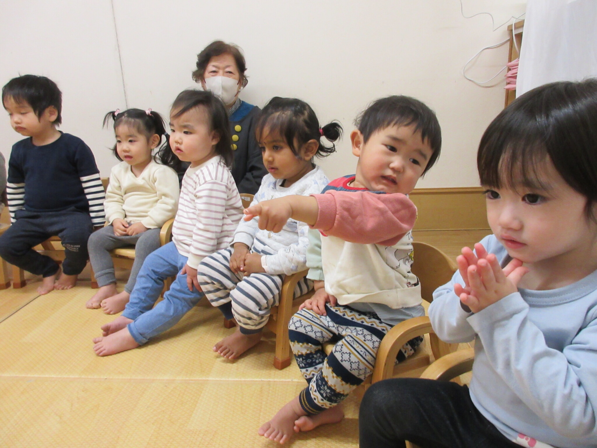 びっくりした表情の子どもたちでしたが、興味津々で見たり、手を振ったりする子もいました。