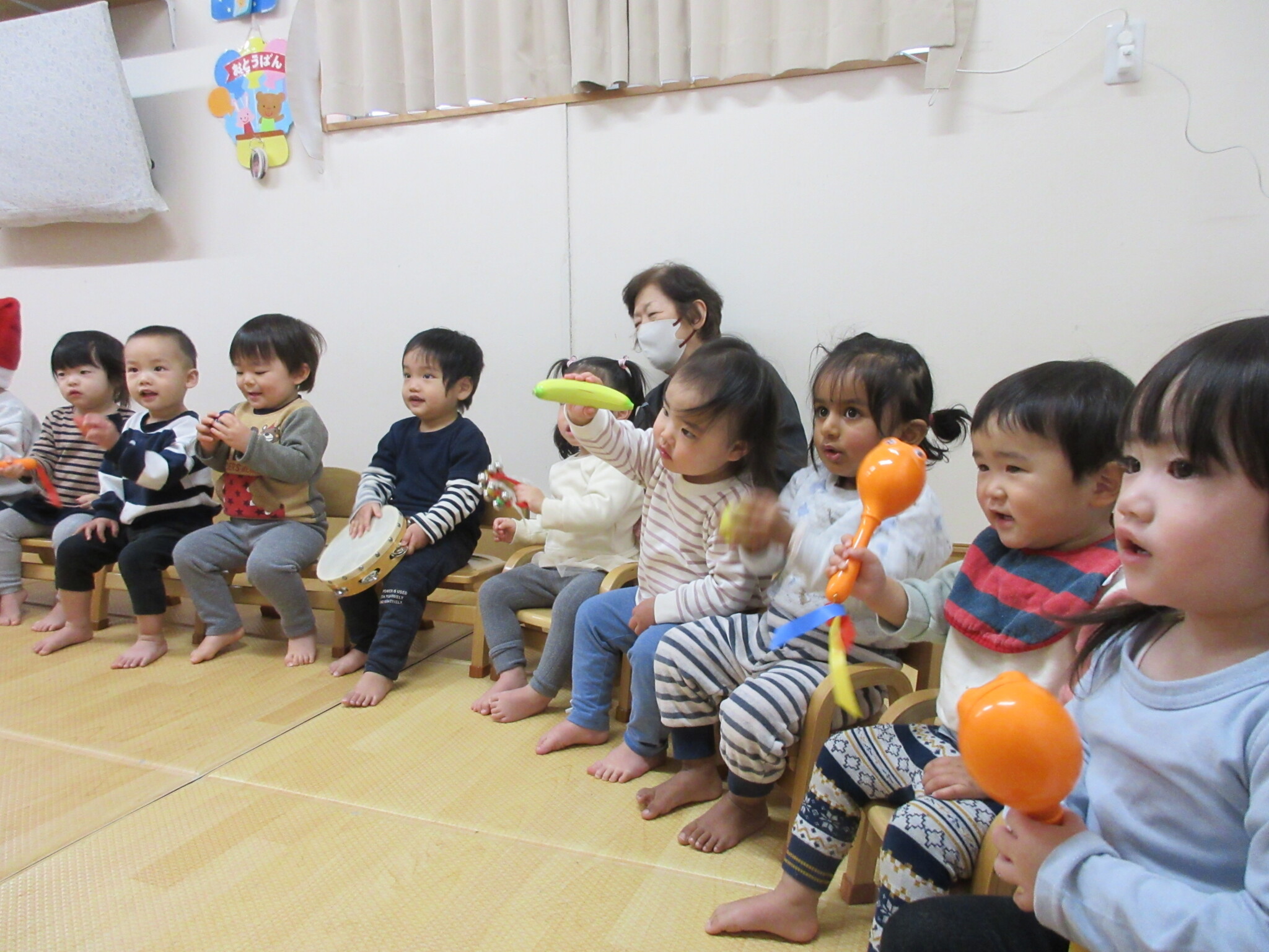 毎朝練習してきた♪あわてんぼうのサンタクロース♪を楽器をもってサンタさんと一緒に歌いました。