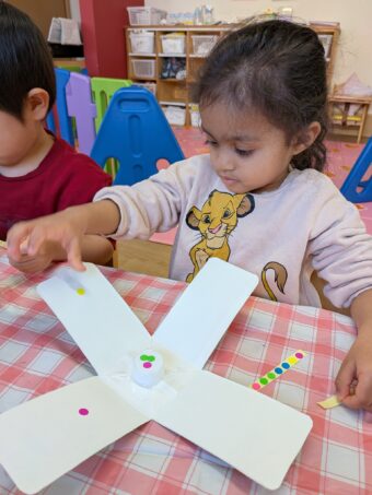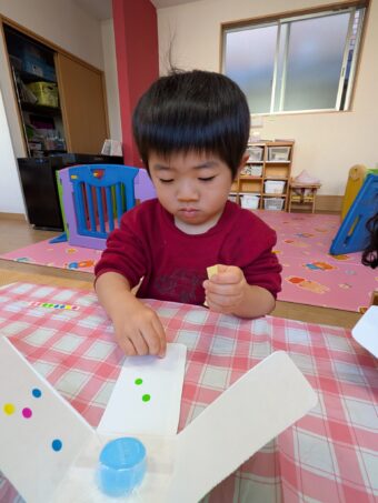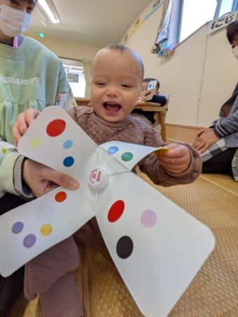 にじ組さんもつき組さんもコマを回すことがとても上手で、ものすごく回転させていました!