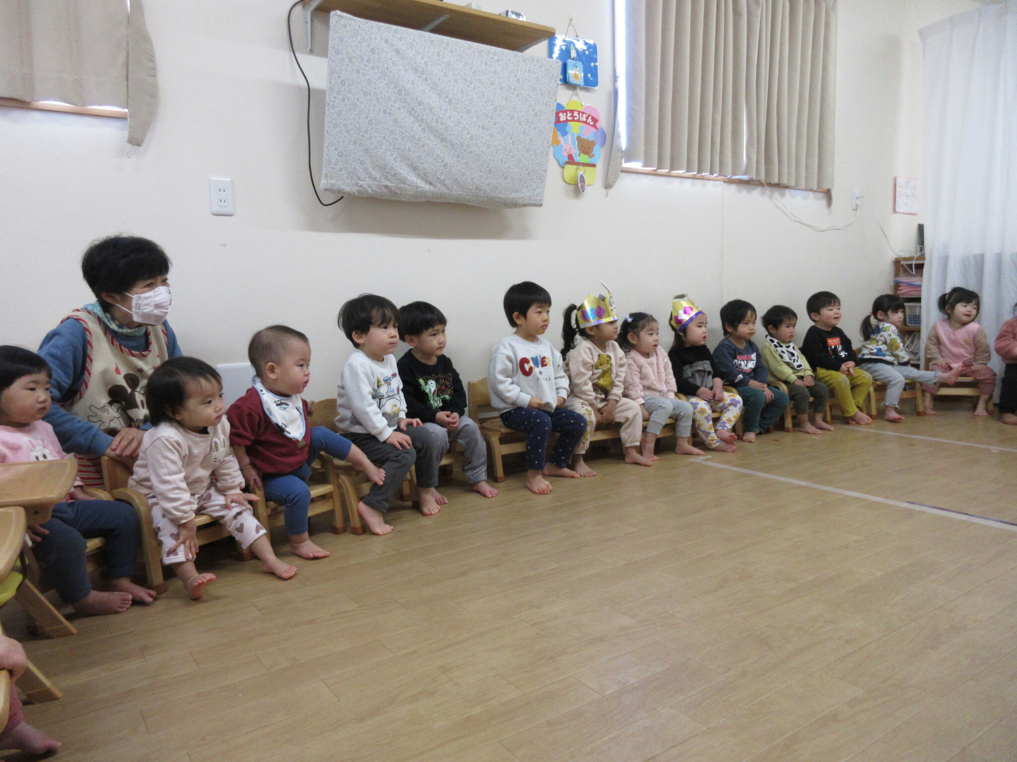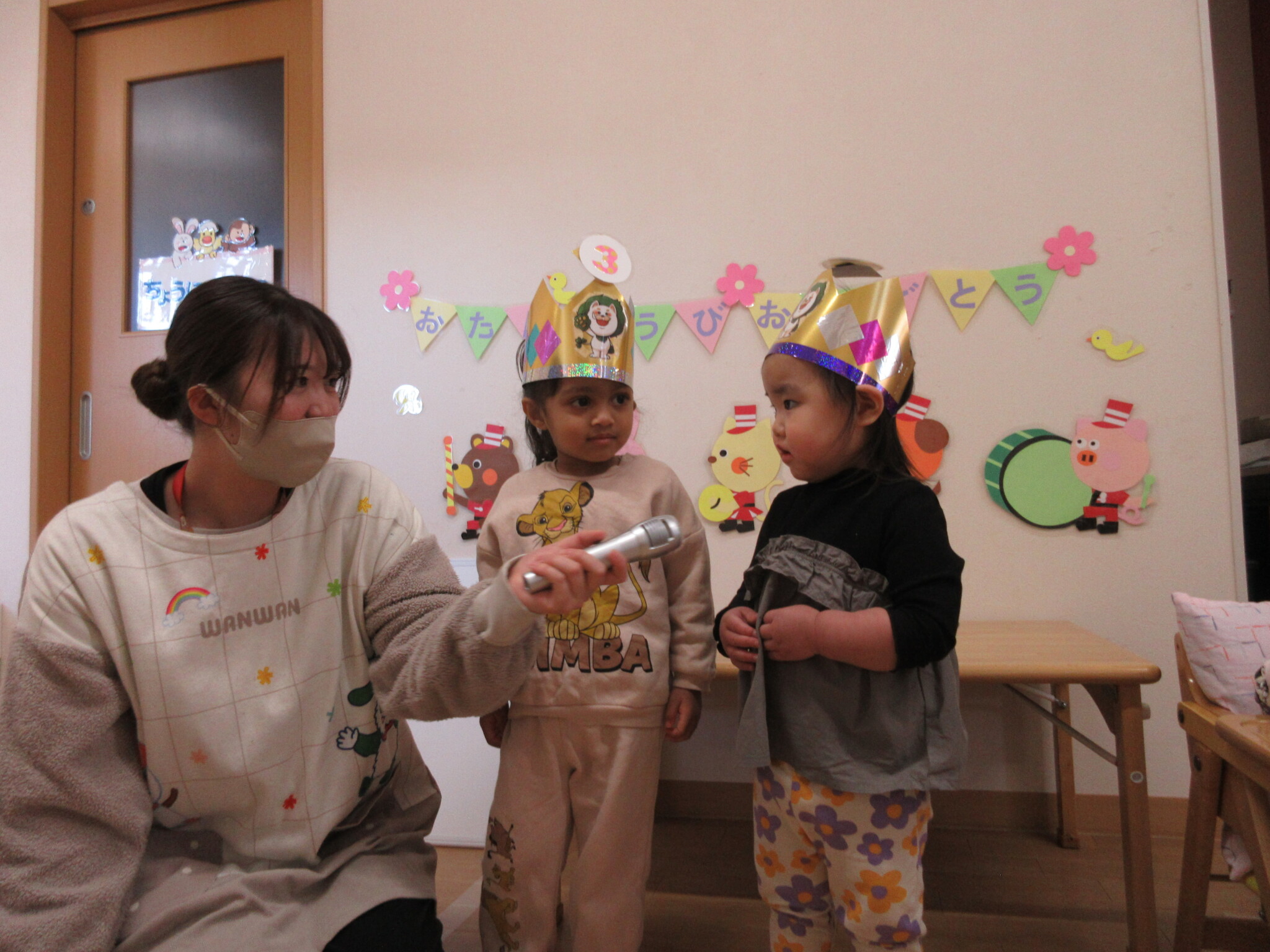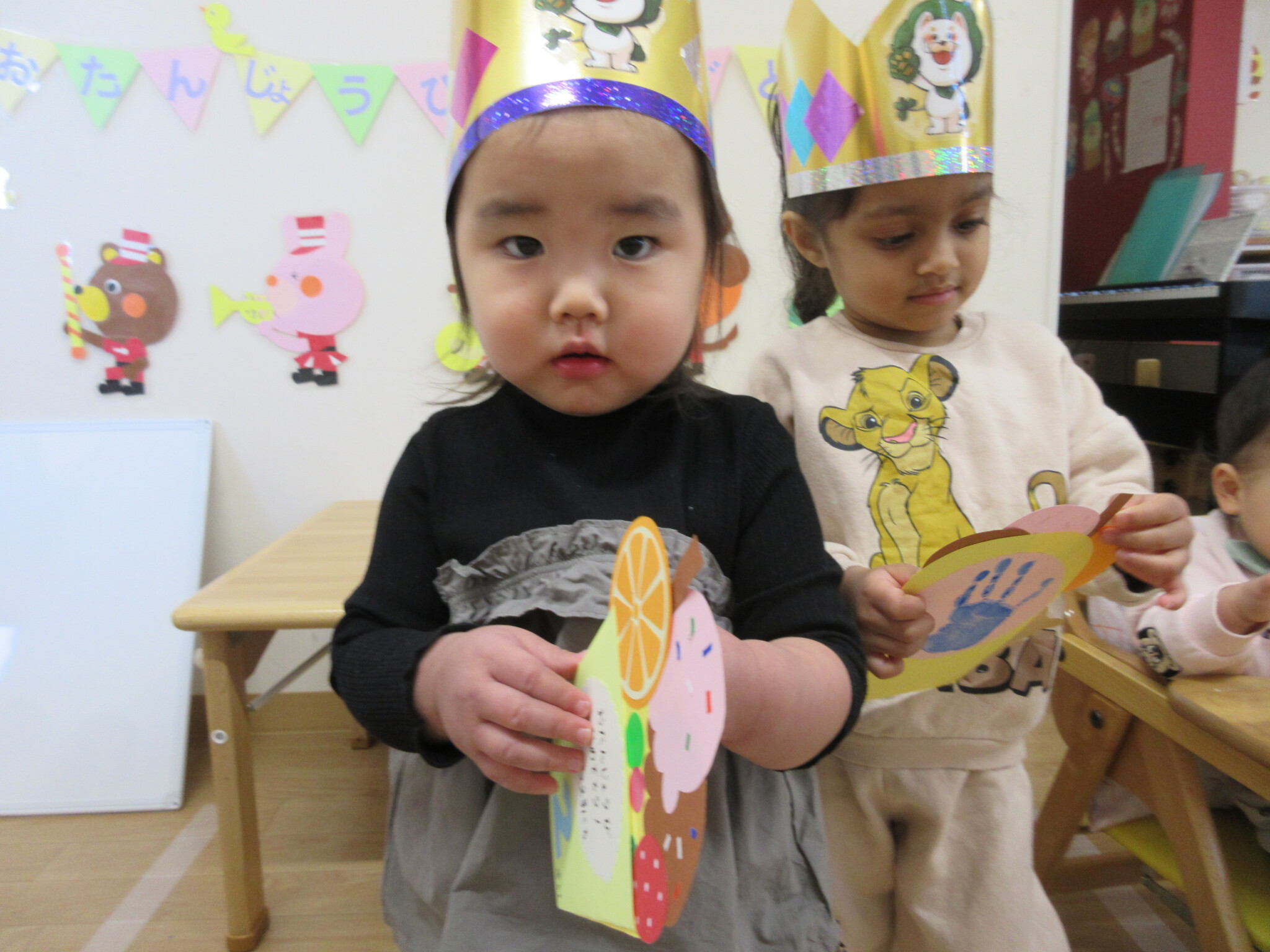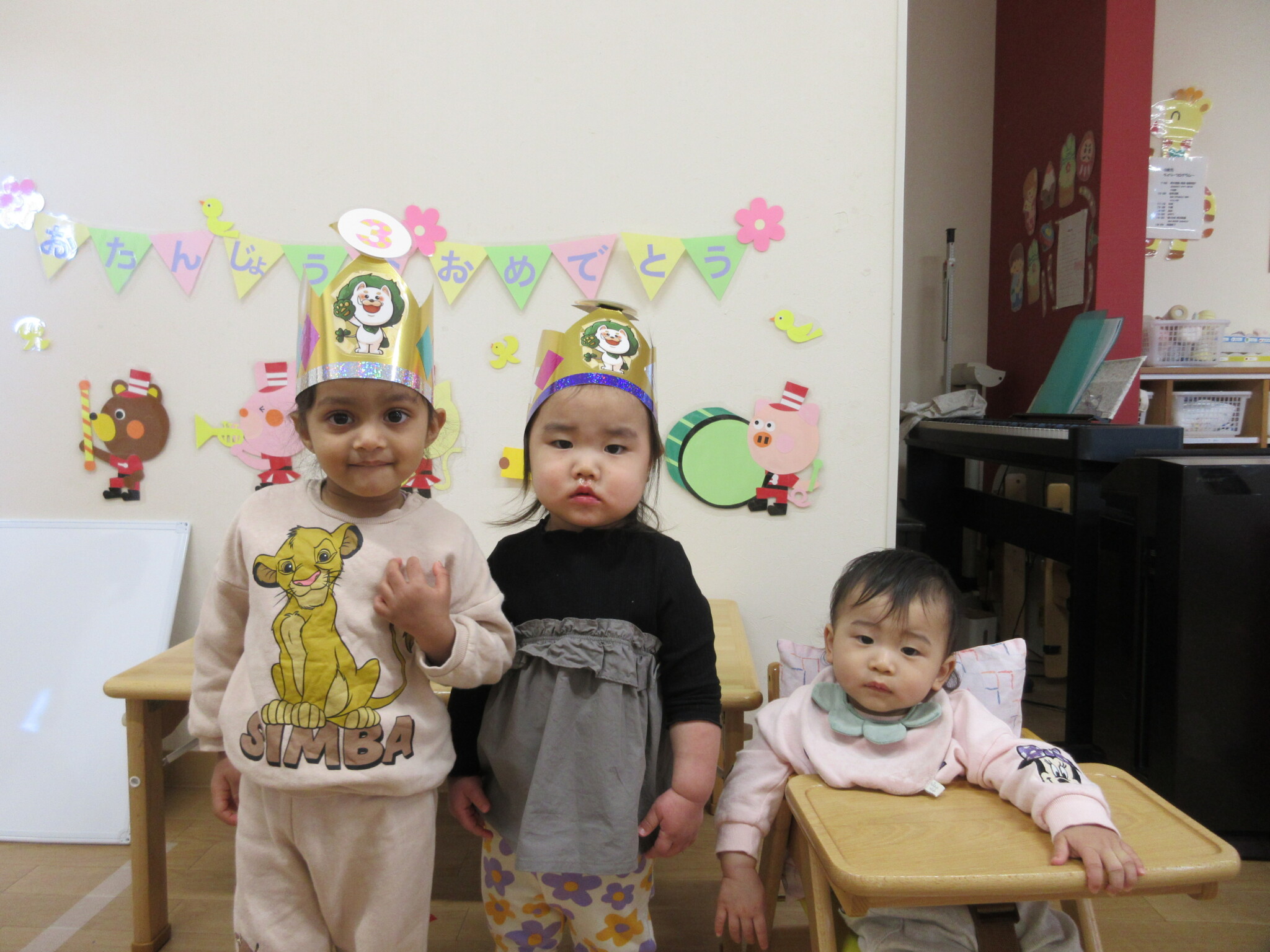 今月の誕生児は、にじ組のAさんと、つき組のRさんと、ほし組のMさんです!