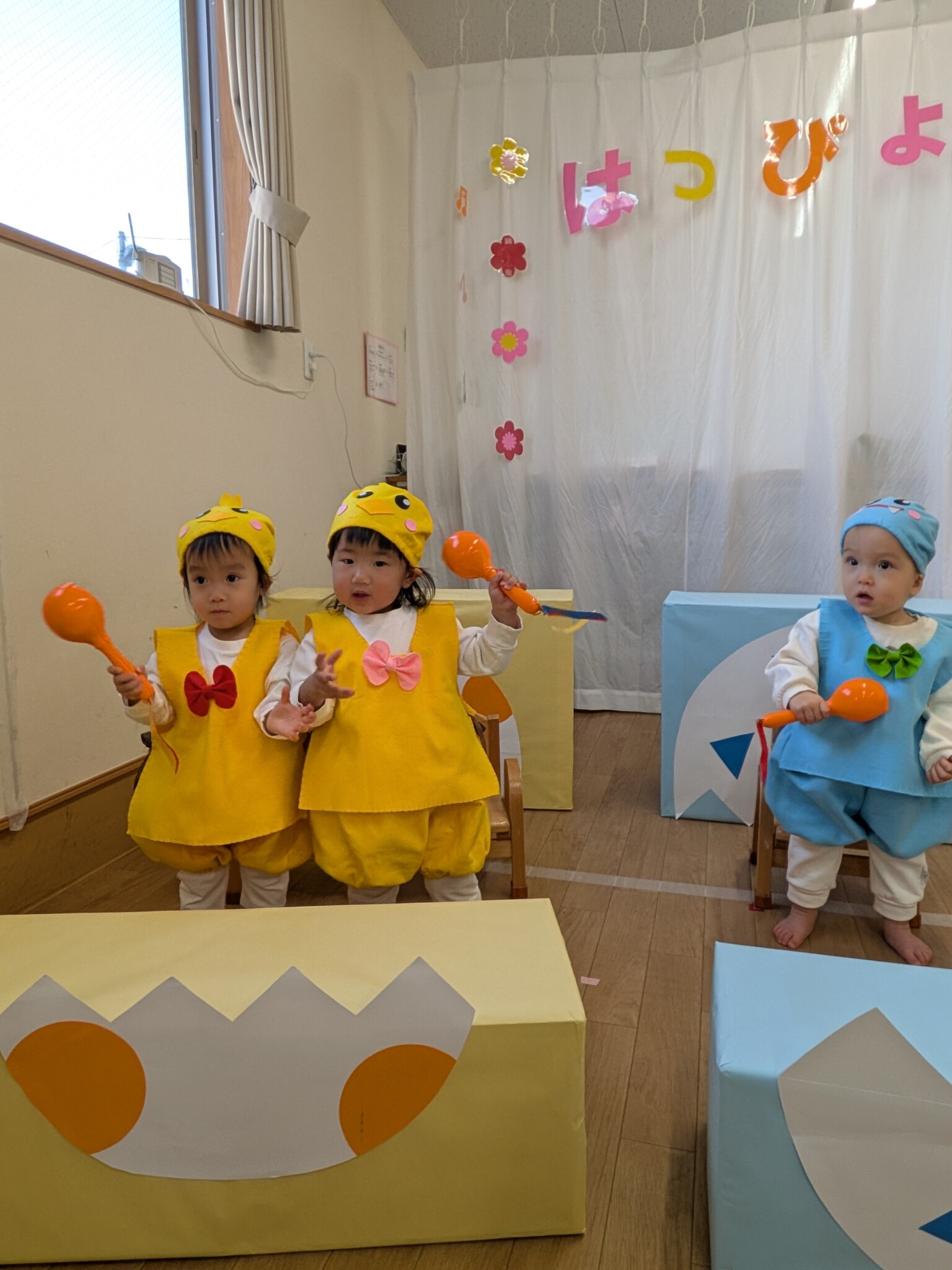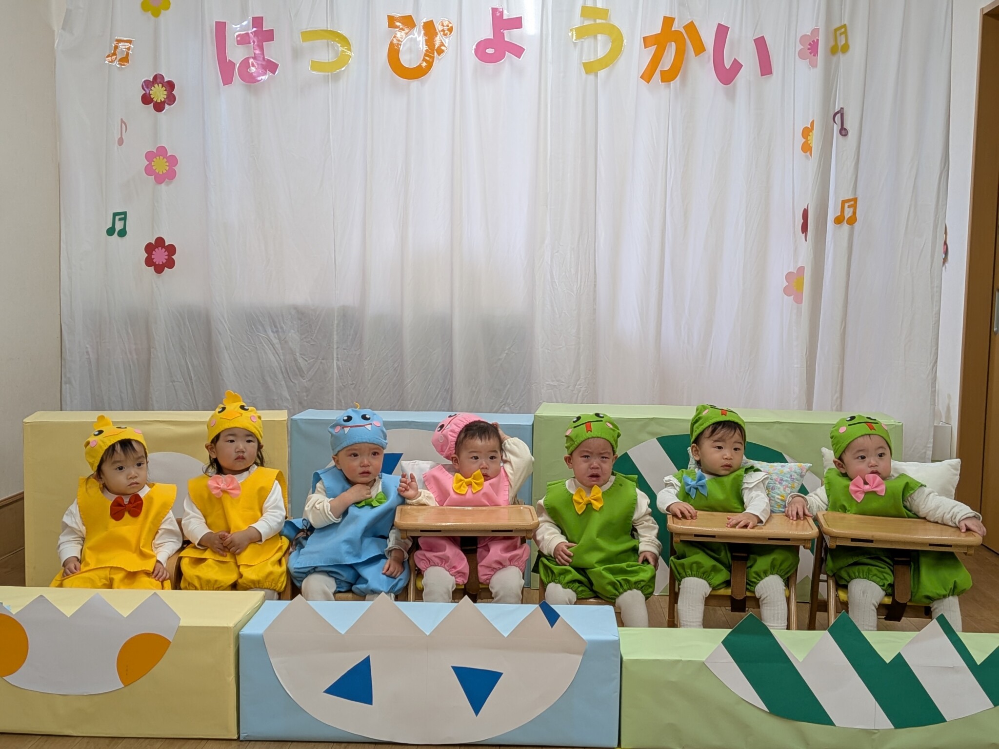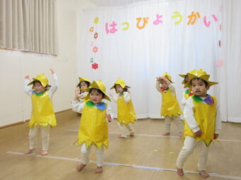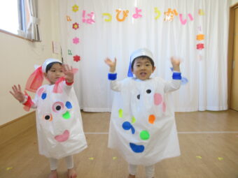 本番に向け、各クラスごとに張り切って練習してきました!当日は元気に登園し、いつもと違う雰囲気に泣いてしまう子もいましたが、緊張しながらも笑顔で精一杯頑張っていました😊