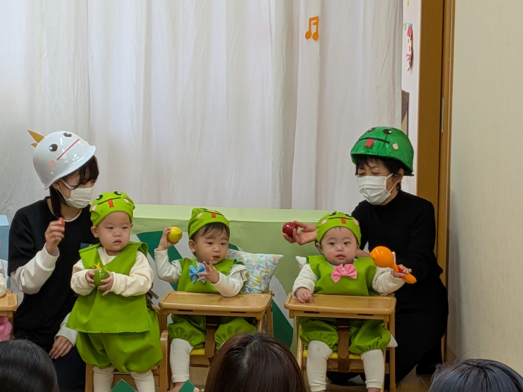 みんなで、「むすんでひらいて」「アイアイ」「さんぽ」を元気よく歌いました♪