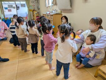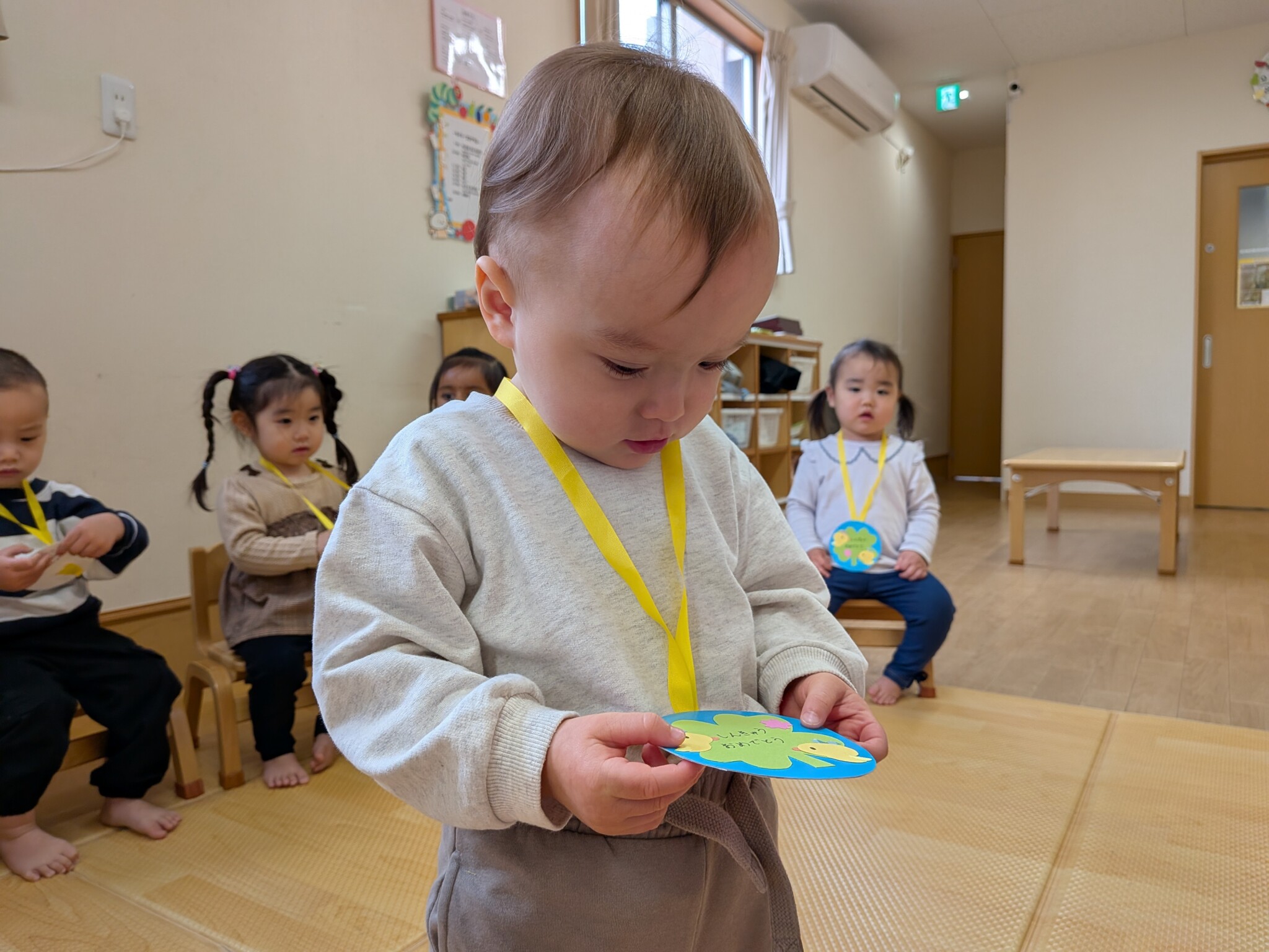 今日から、新年度がスタートしました。元気に登園した在園生!新しいお友だちに興味津々な子や「にじ組さんなの!!」と、学年が一つ大きくなったことを喜ぶ子もいました。
