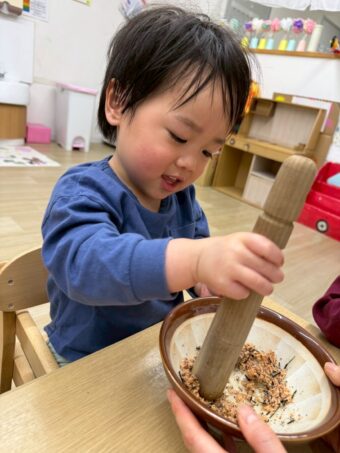 3月11日。前回はにじ組でふりかけづくりを行い、今回はつき組でふりかけづくりを行いました(*^_^*……