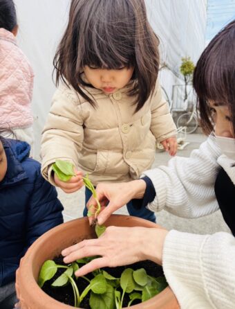 今年の冬は寒さが厳しくて小松菜の成長が、予定より遅れた為、にじ組さん🌈の卒園までに