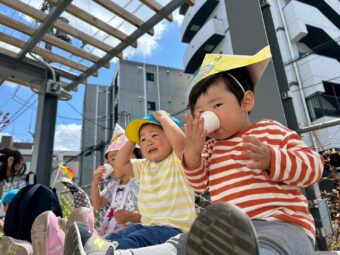 お店屋さんやおうち、他の保育園さんのこいのぼりを見つけて大興奮のにじ組さん🌈