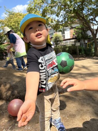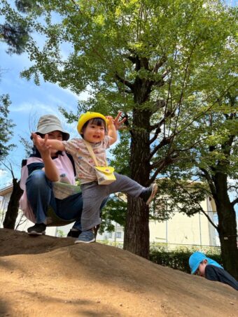 早めに公園へ向かう子どもたち。汗をかきながらも思う存分に走り回って楽しんでいます。お散歩カードを首に下げて、ウォークラリーを楽しむクラスも♪♪