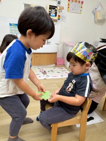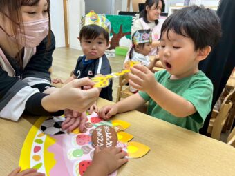 今月も、元気いっぱいの笑顔があふれるお誕生日会が行われました〜!主役は2名です!!