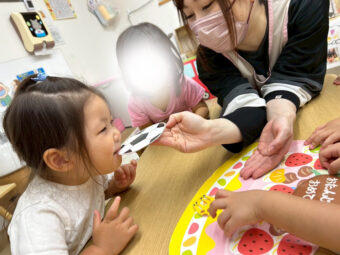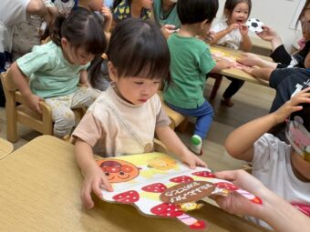 お名前を呼ばれると「はい!」と少しドキドキしながらもしっかりお返事でき、インタビューでは好きな食べ物や動物をみんなに紹介してくれました!Kさんは「緑のぶどう」と「黒いぶどう」が大好きだそう!色も味も違って、それぞれの美味しさと魅力がありますね🍇