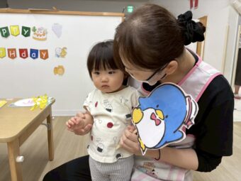 先生からのプレゼントは、「ペンギンマークの百貨店~バースデーバージョン~」に合わせたシアターも楽しみました!みんなが大好きな手遊びうたなので、ノリノリで歌ってくれましたよ〜!🐧