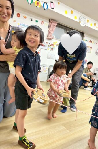 ほし組さんは後ろから鈴やタンバリンを使って素敵な音色を響かせてくれました〜!!!卒園児のKさん、Sさんもお手伝いしてくれてありがとうね♡