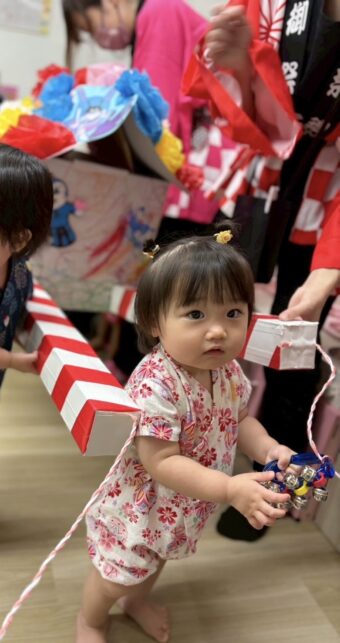 今年は手作りお神輿担ぎにも挑戦…!練習から「わっしょい!」と大きな声を出して張り切る子どもたち⭐︎当日も元気な声でしっかり担いで頑張ってくれました‼︎お父様方もご協力ありがとうございました!