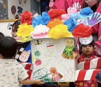 お神輿やゲームにもアンパンマンと愉快な仲間たちが遊びに来てくれました〜!装飾には子どもたちの手型やお製作も…!楽しみながらお手伝いしてくれました〜‼︎どうもありがとうね♡