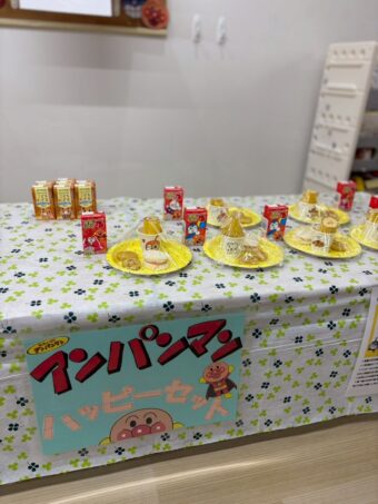 調理の先生たちがアンパンマンのハッピーセットを作ってくれました✨試行錯誤を重ねて考えたメニュー…!アンパンマンサンドにはアンパンマンの型を押しました‼︎当日はパンの弾力で消えてしまいましたが、クッキングなどでリベンジしたいと思います⭐︎