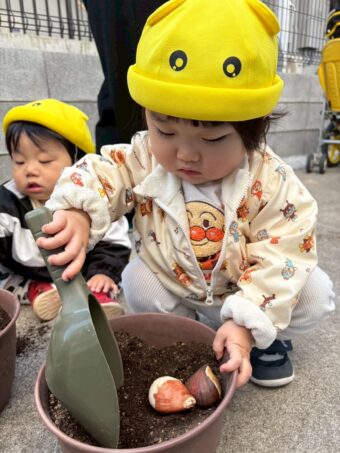 購入した球根を受けとると、表情も誇らしそうですね!保育園に帰園するといろんなクラスの先生に「見て見て~」と嬉しそうに自慢していたそうですよ😊