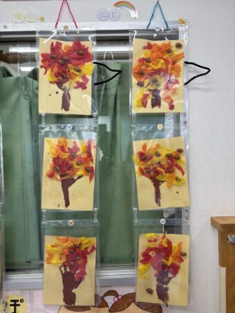 綺麗に紅葉したドングリの木が完成しました〜⭐️色味やドングリの数も十人十色!みんな違ってみんないい♡ですね!