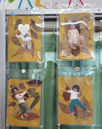 葉っぱを貼った画用紙に、皆がゴロ〜ンと寝転がったら完成!!!