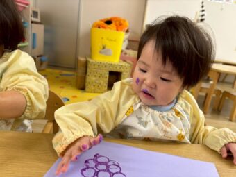 あれ?Cさんもぶどうになってる!?お顔や手についてもへっちゃらです‼︎夢中になってスタンプを楽しんでいました〜!